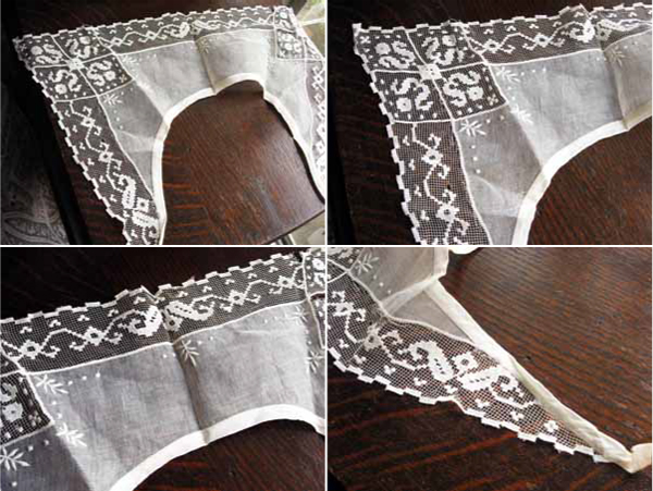 こちらはフランスから届いたアンティークで、縁取りのフィレレースが可愛い襟です。