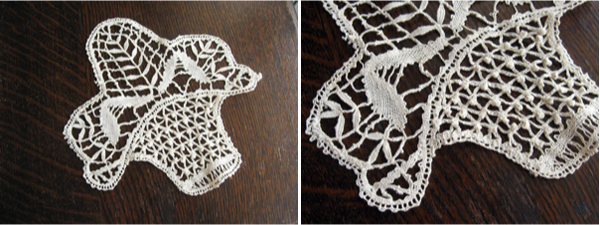 こちらはフランスから届いたアンティークのモチーフレースです。 バスケットのモチーフは人気のデザインです。