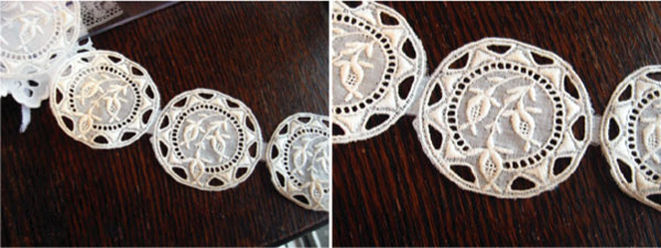 ベルギーから届いた、アンティークでアイレットのモチーフレースです。
