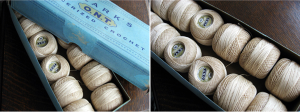 こちらはフランスから届いたヴィンテージのレース糸です。勿論タッティングの意図としても使えます。