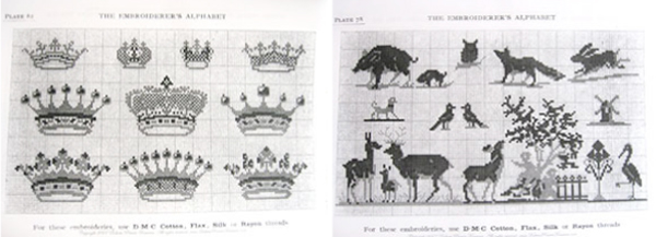 沢山のイニシャルモノグラムの図案とそしてアイレットボーダー刺繍の図案・動物やオーナメントなどが本当に沢山です。