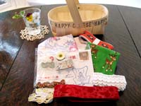 ジャーマンビンテージヴィンテージファブリック・イニシャルテープ・ナンバーテープ・ミニピンクッション・リボン・ペパーボビン・ステンシルシート・レース・その他が入った、ハンドメイドに使える材料のセットです。 この他同じサイズでも、もう一種類を用意していますので、ご検討下さい。
