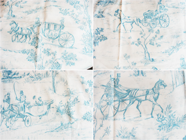 こちらはフランスから届いたアンティークで、トワル・ド・ジュイの生地です。